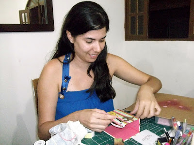 Gi e eu fizemos um porta ATC que minha querida amiga Scrapeteira, Aline Salmon ensinou lá no Artist Team Club.